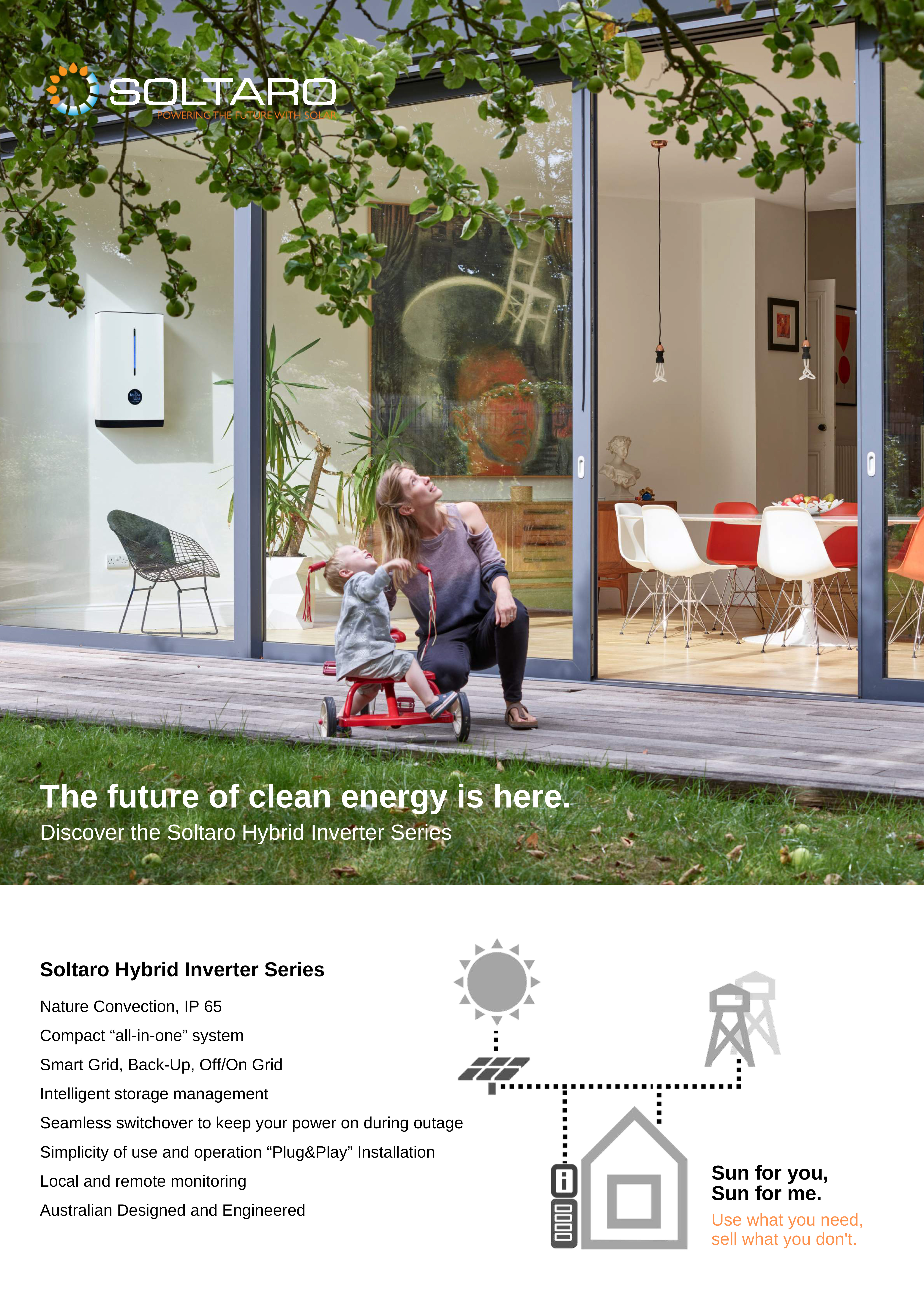 Most standard Solar Grid Connect Inverter systems will shut down in the event of a mains failure or black out leaving you without power, the Soltaro unit will continue to deliver power from the solar panels to your household in the event of a mains blackout. If batteries are added the system can then also deliver power throughout the night time. Batteries can be very easily added at any stage.