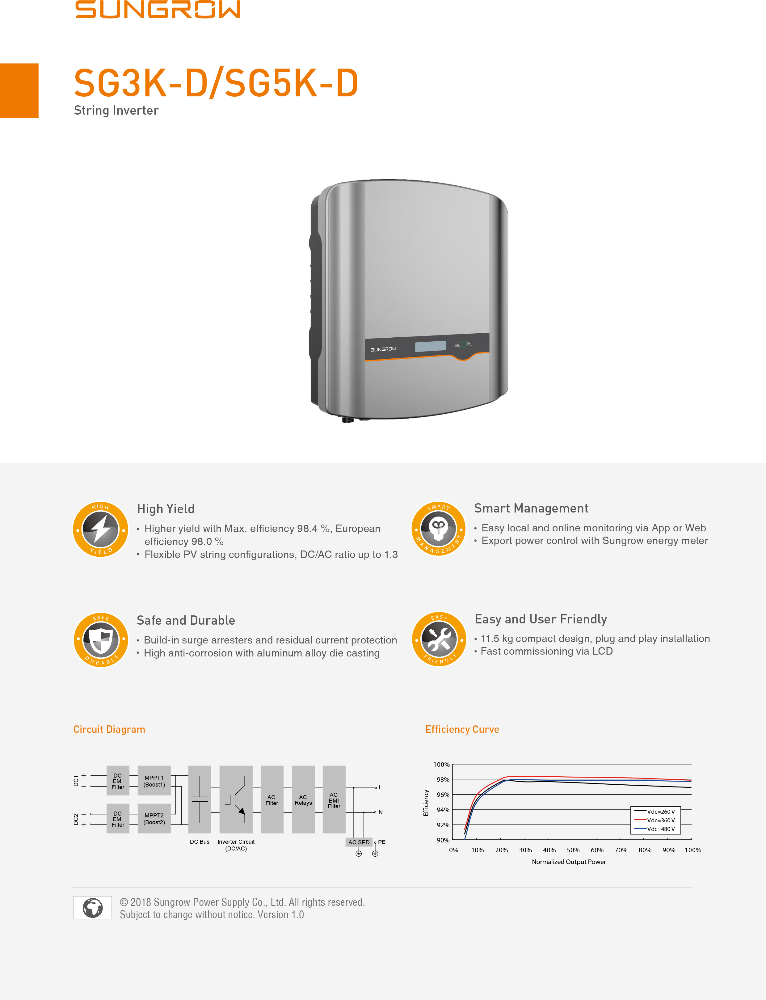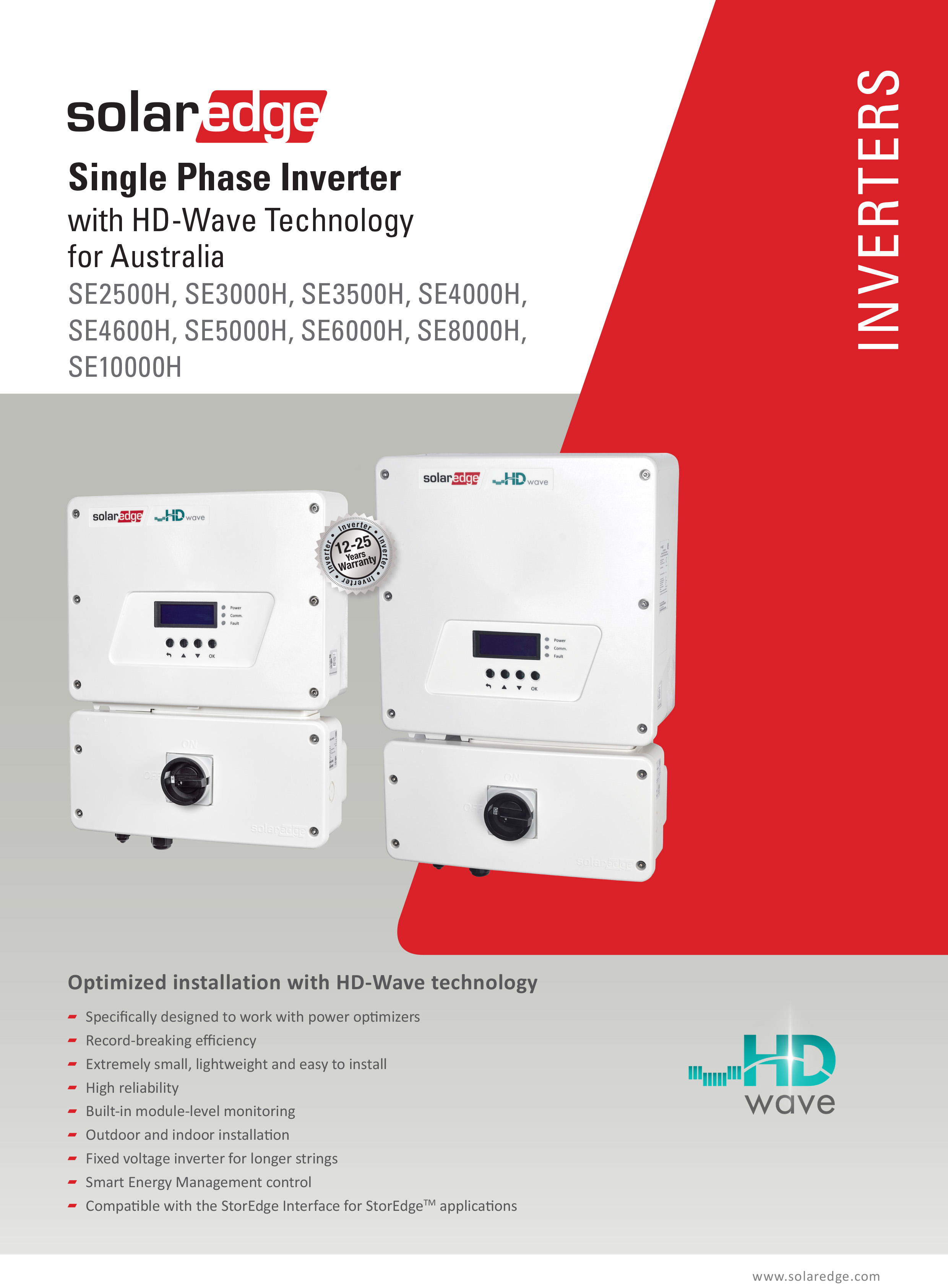 The recently released HD wave (SE-H series) is one of the smallest and lightest inverters on the market and according to the specifications is also the most efficient at 99% for the larger 5 – 6KW models.